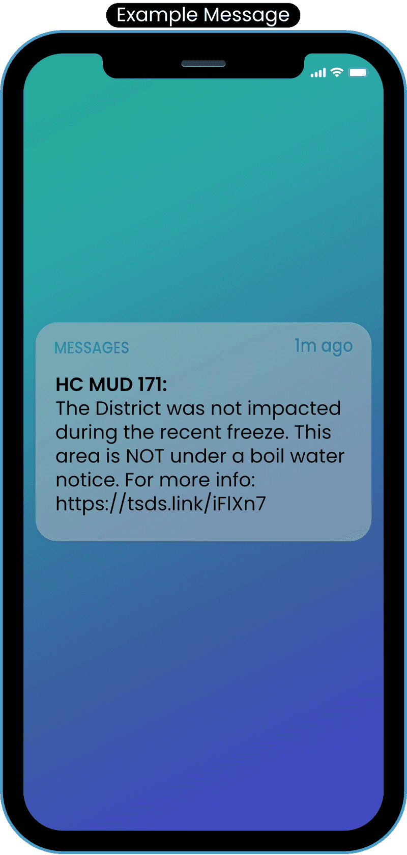 Residents registered for this free service will receive text and/or email notification explaining the basics of the situation with a short link to the news post on the District website with more complete details.